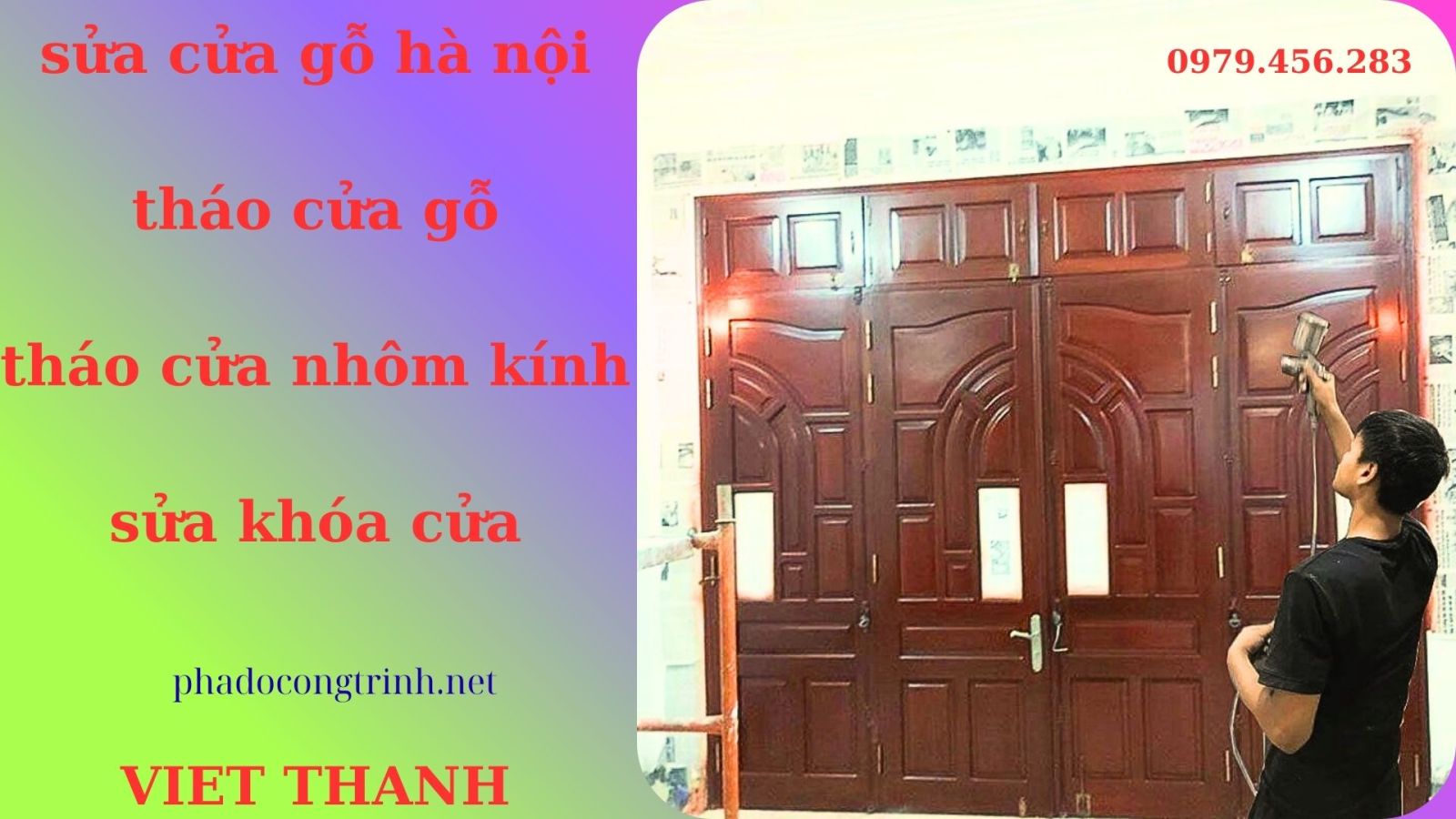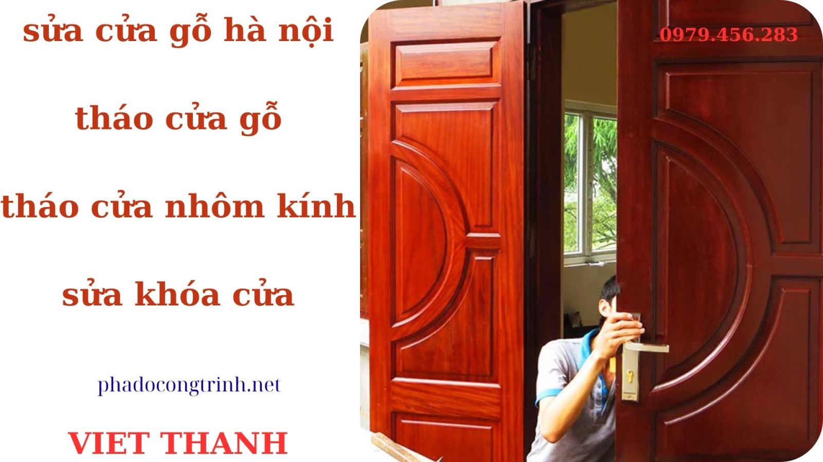 Nếu bạn đang tìm kiếm đội ngũ thợ chuyên nghiệp, làm việc nhanh chóng, đảm bảo kỹ thuật và có chế độ bảo hành rõ ràng, đừng ngần ngại liên hệ Việt Thanh để được tư vấn chi tiết. Một dịch vụ uy tín không chỉ giúp cửa gỗ vận hành trơn tru, bền đẹp mà còn mang lại sự yên tâm và tiết kiệm cho gia đình bạn.