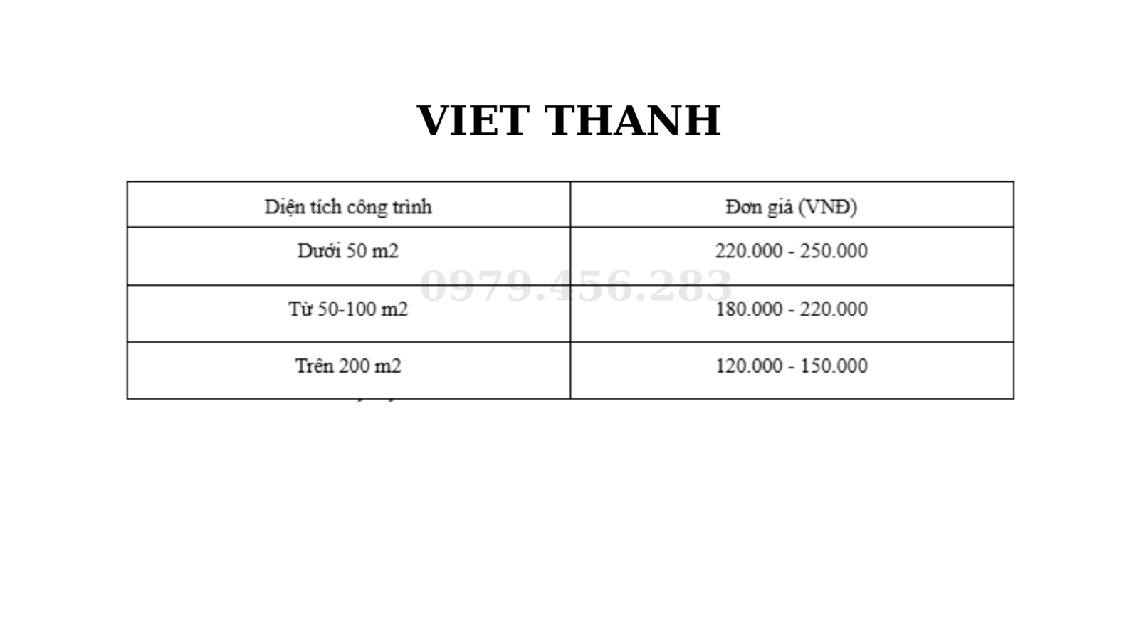 1. Bảng giá phá dỡ theo diện tích