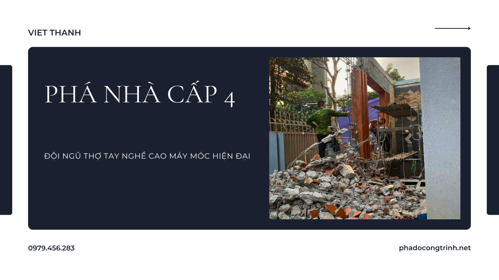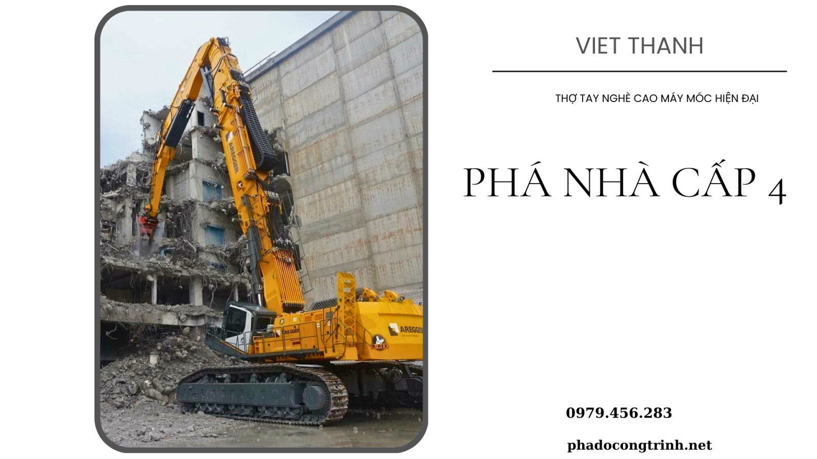 Nắm được chi phí phá dỡ nhà cấp 4 tại Hà Nội là bước khởi đầu quan trọng trước khi cải tạo hay xây dựng mới, sẽ giúp bạn chủ động hơn trong kế hoạch tài chính cũng như hạn chế rủi ro phát sinh. Đặc biệt việc lựa chọn đơn vị uy tín, báo giá minh bạch là yếu tố then chốt để đảm bảo quá trình diễn ra an toàn, nhanh chóng và tiết kiệm. Nếu bạn đang tìm kiếm một giải pháp phá dỡ nhà cấp 4 chuyên nghiệp, trọn gói và không lo phát sinh chi phí, hãy liên hệ ngay với Việt Thanh để được tư vấn và nhận báo giá chi tiết. Đây chính là bước đệm vững chắc giúp bạn chuẩn bị tốt nhất cho công trình mới của mình.
