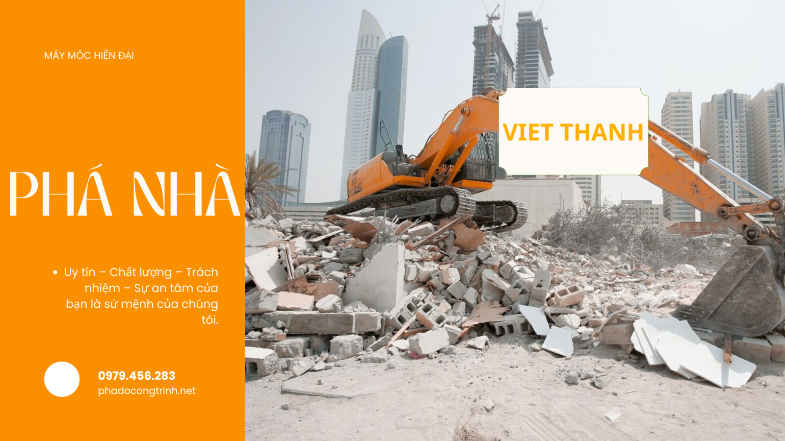 Bạn có thể liên hệ dịch vụ phá dỡ công trình xây dựng uy tín Việt Thanh để được tư vấn cụ thể về các hạng mục cũng như chi phí một cách chi tiết nhất: 0979.456.283