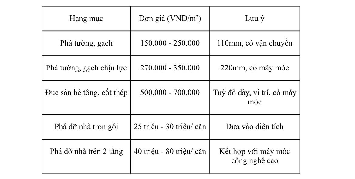 1. Phương án thi công đúng chuẩn quy trình phá dỡ