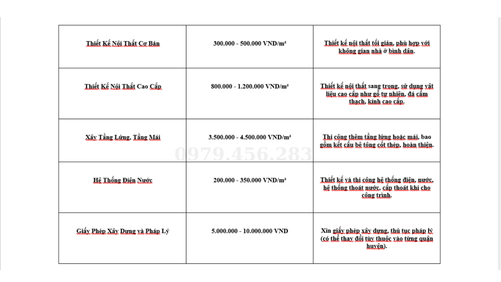 ● Chi phí phát sinh: Các chi phí không nằm trong bảng giá sẽ được thông báo và thống nhất trước khi tiến hành thi công.