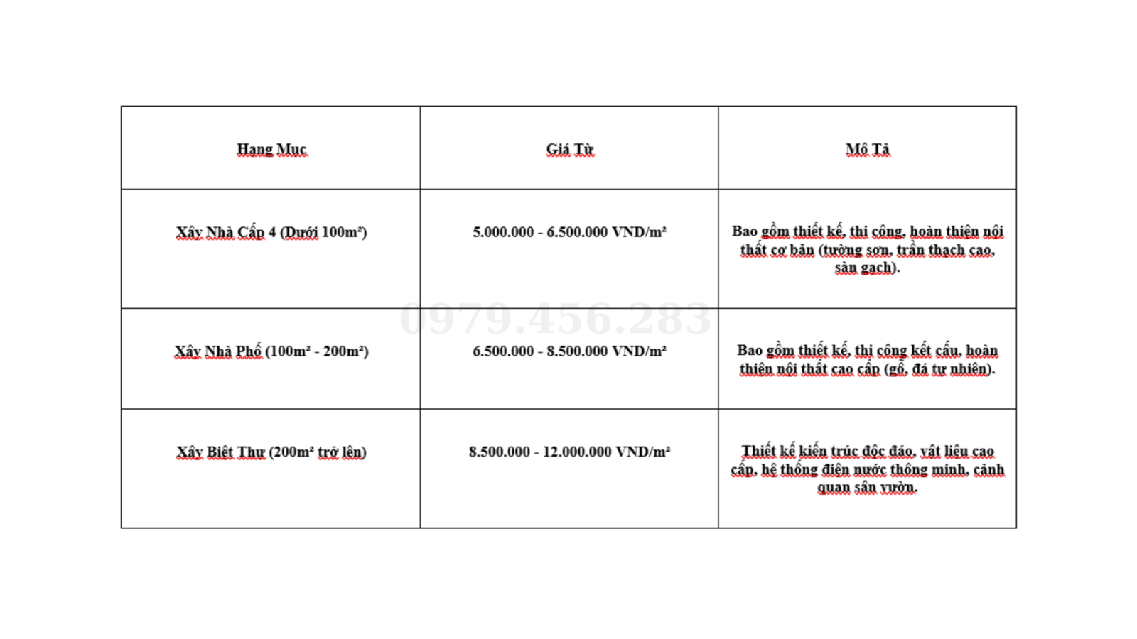Bảng giá này chỉ mang tính chất tham khảo. Để có báo giá chính xác và chi tiết hơn, bạn nên liên hệ trực tiếp với công ty xây dựng để được tư vấn và báo giá cụ thể theo nhu cầu và yêu cầu của mình.