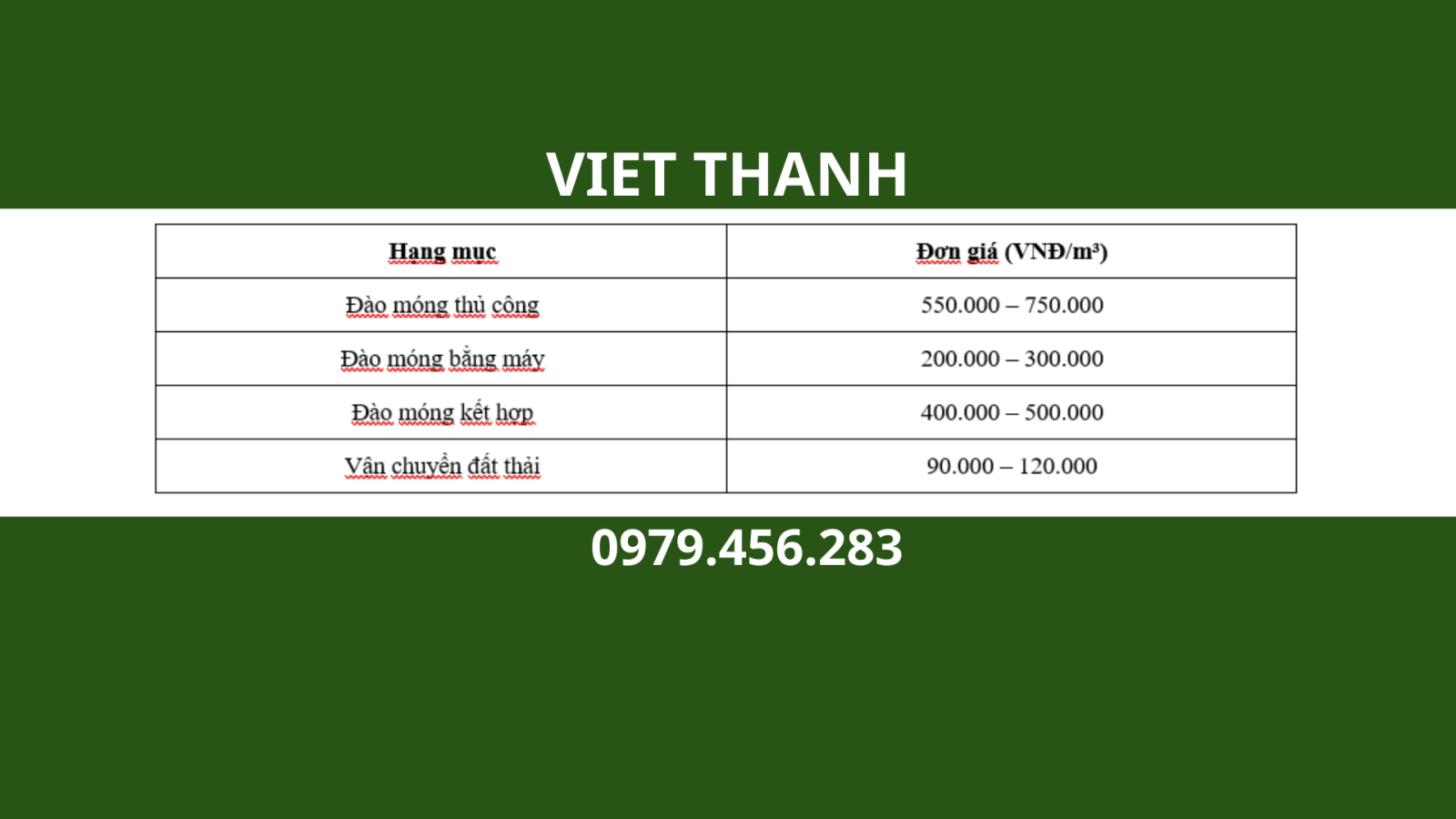 Báo giá dịch vụ đào móng nhà tại Hà Nội của Việt Thanh