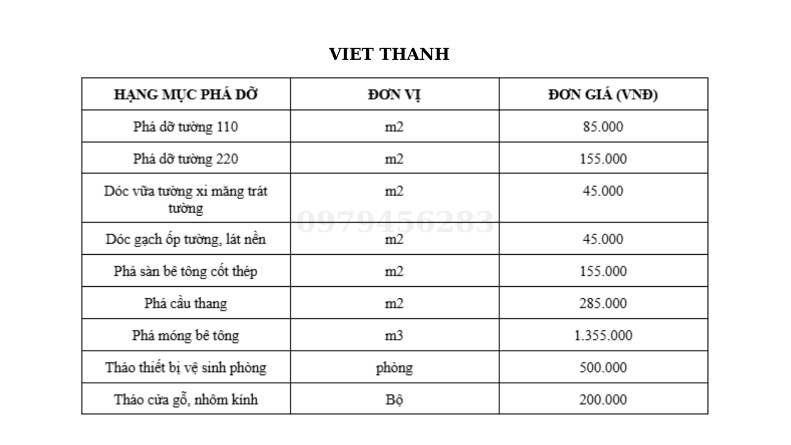 Điểm mạnh của Việt Thanh nằm ở đội ngũ kỹ thuật viên tay nghề cao, hệ thống máy móc hiện đại và quy trình thi công an toàn, khoa học. Đơn vị luôn cam kết mang đến báo giá minh bạch, hợp đồng rõ ràng, không phát sinh chi phí trong quá trình thi công. Bên cạnh đó, Việt Thanh còn hỗ trợ khách hàng thực hiện thủ tục pháp lý, xin giấy phép phá dỡ, thu gom và xử lý rác thải đúng quy định.