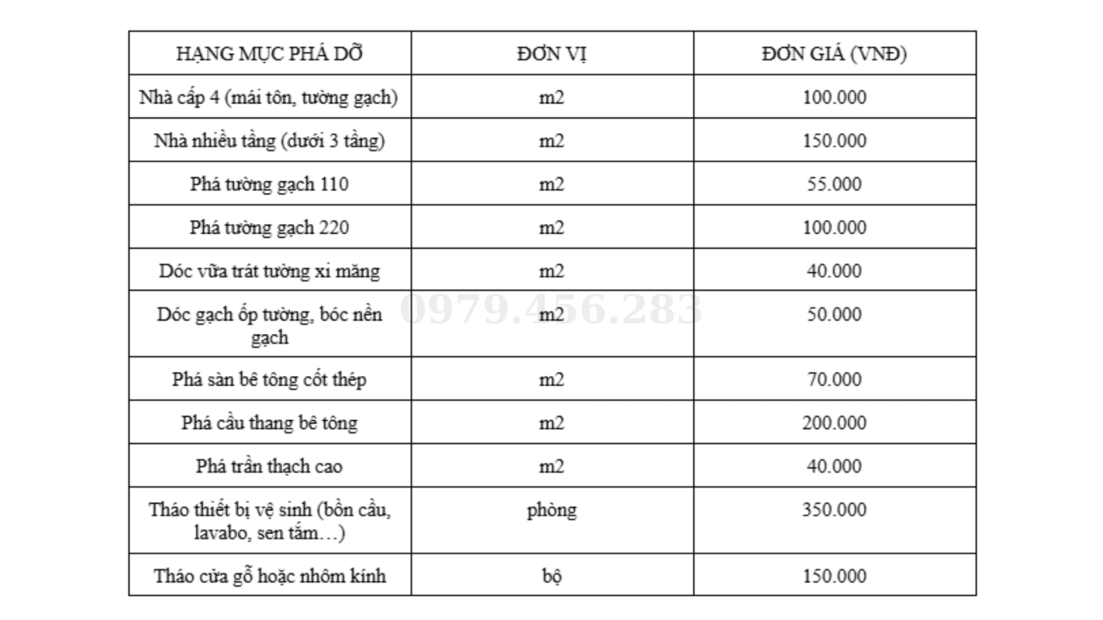 1. Các yếu tố ảnh hưởng đến giá phá dỡ
